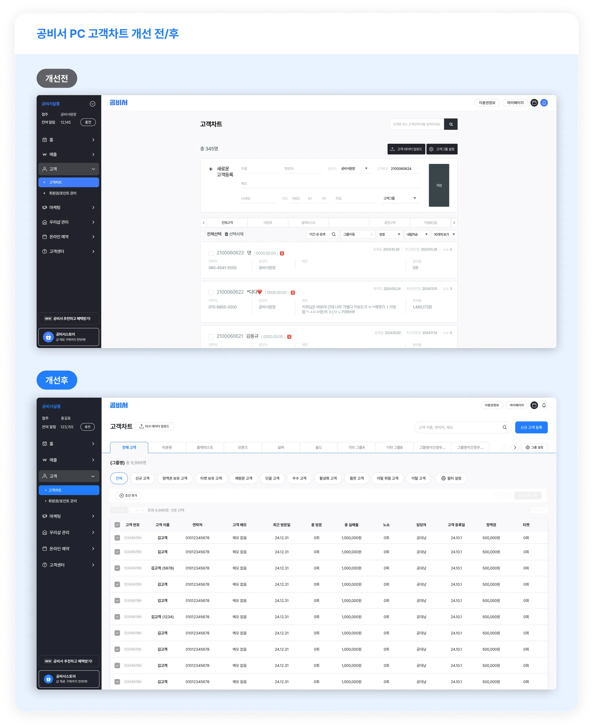 효율적인 고객 관리: 세밀한 필터링으로 고객 정보를 체계적으로 관리하여 업무 효율을 높일 수 있습니다.