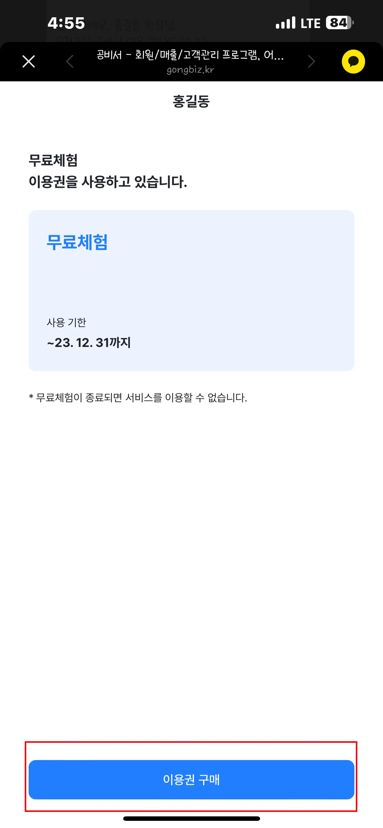 STEP 4 : 원장님의 사용기한 및 이용권 확인이 가능하며, 하단 이용권 구매를 클릭합니다.