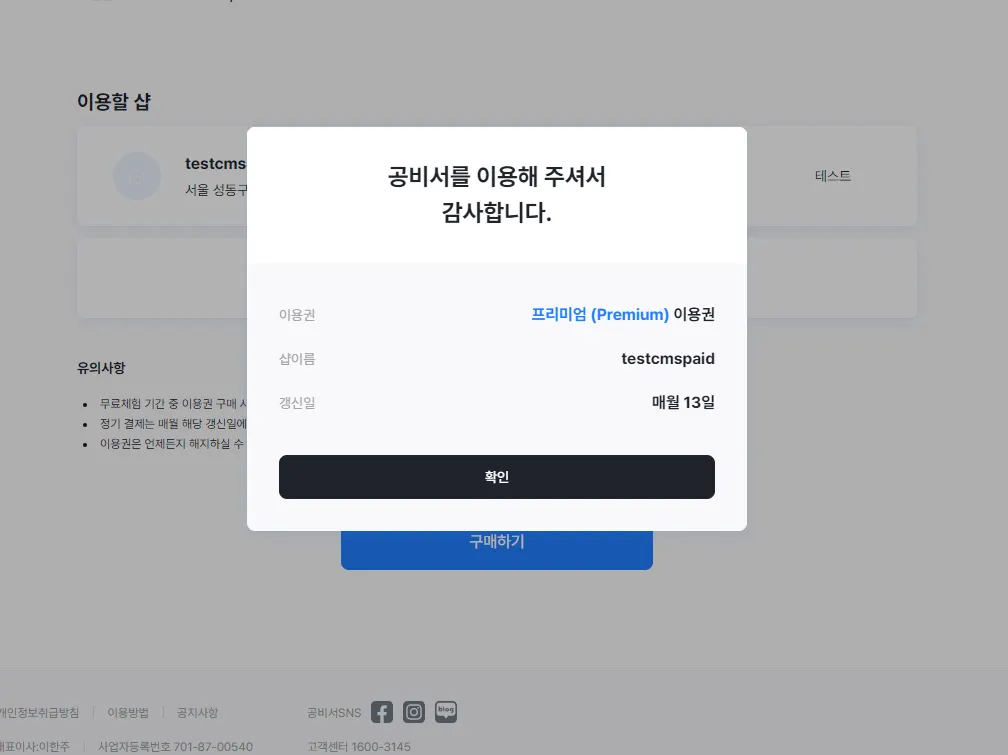 PC 공비서 : 이용권 정보 > 정기결제 신청 / 선납권 결제