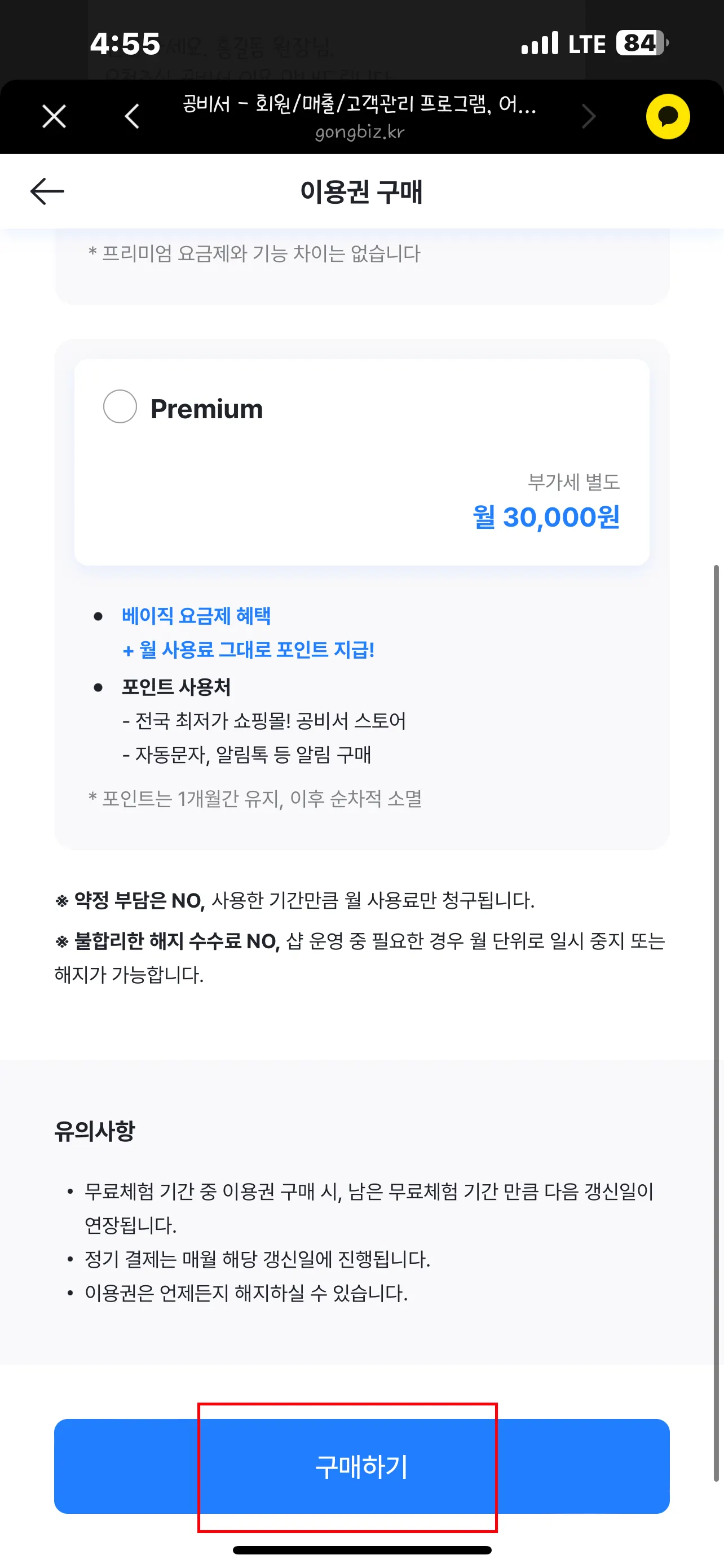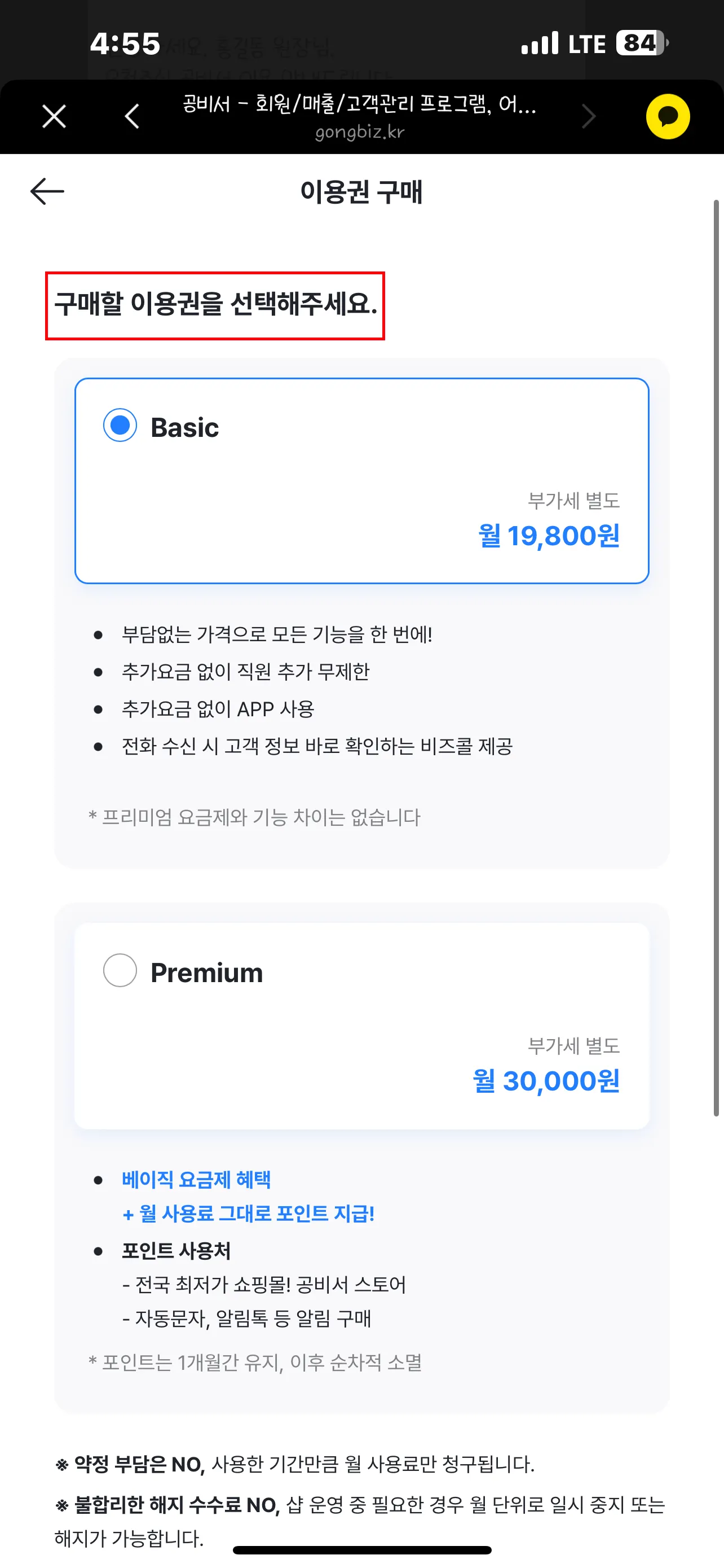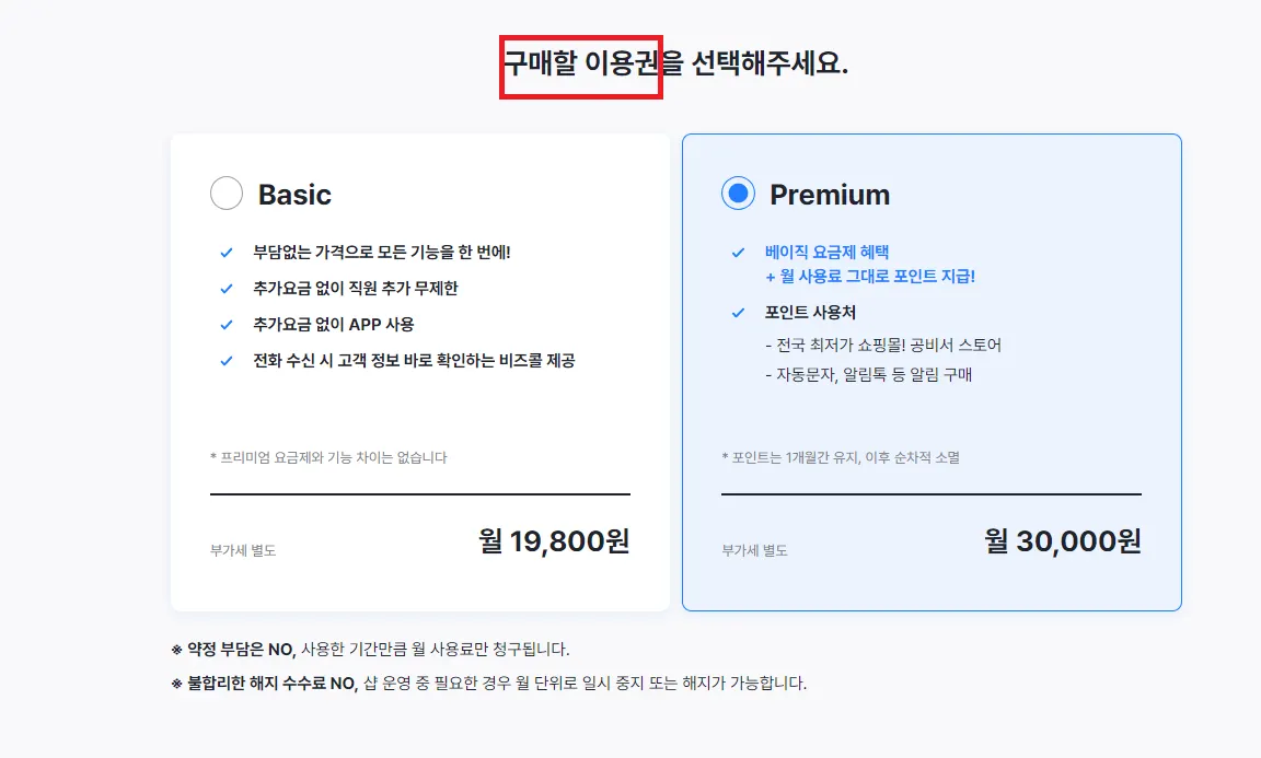 STEP 5 : 구매하실 이용권을 선택합니다. ( BASIC / PREMIUM )
