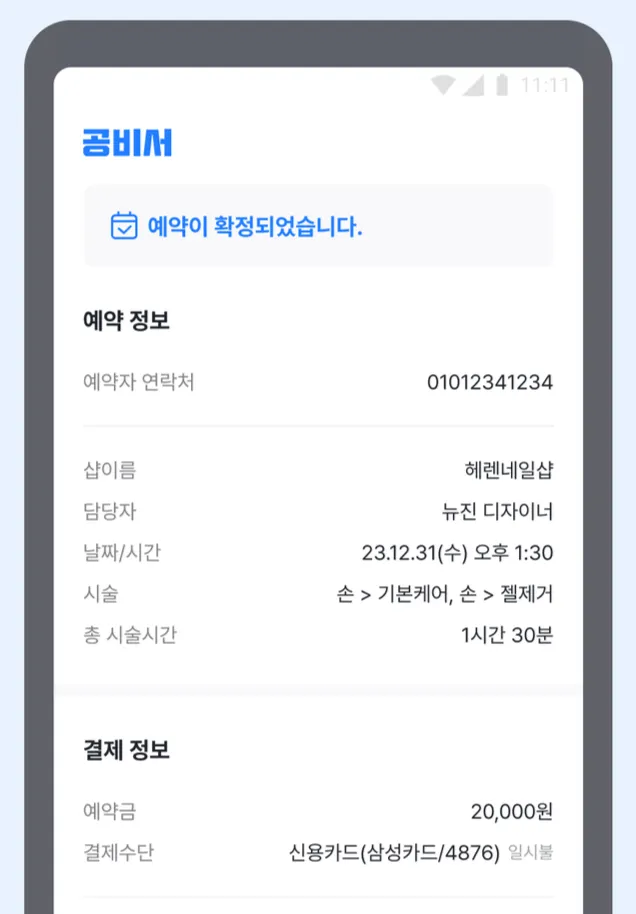 간단한 설정만으로 [고객님의 예약금 결제를 ‘공비서 원장님’에서 직접 관리] 할 수 있습니다.