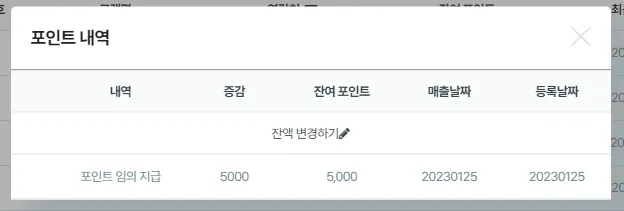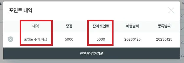 ‘잔여 포인트’에 지급하고자 하는 포인트를 직접 입력해주시면 됩니다.