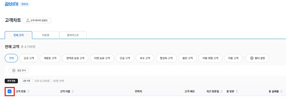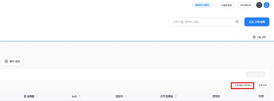 다운로드 희망하시는 고객을 선택 후, ‘고객 정보 다운로드’ 버튼을 선택해 주세요.