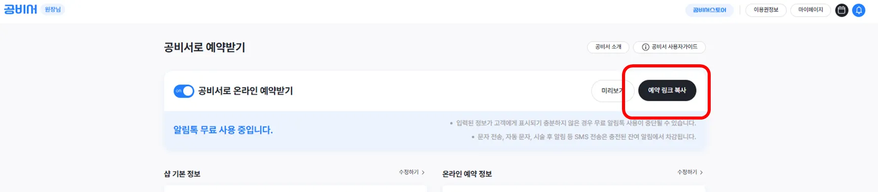 PC / APP: 온라인 예약 > 공비서로 예약 받기 > 예약 링크 복사