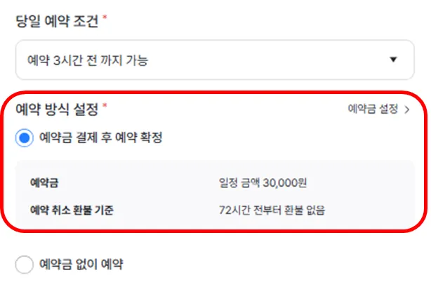 PC / APP: 온라인 예약 > 공비서로 예약받기 > 온라인 예약 정보 수정 > 예약금 설정