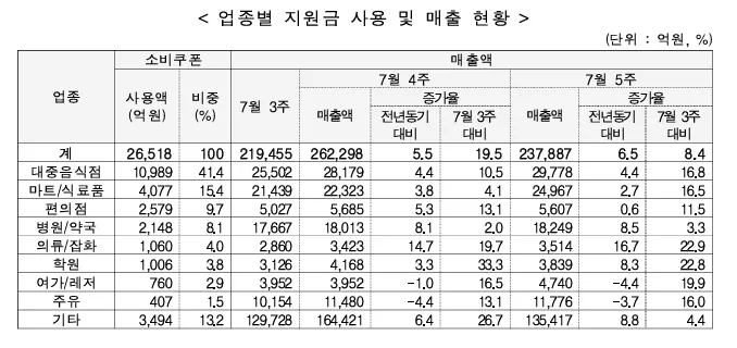 특히 소비쿠폰 지급 초반 2주 동안 사용이 가장 활발했고,