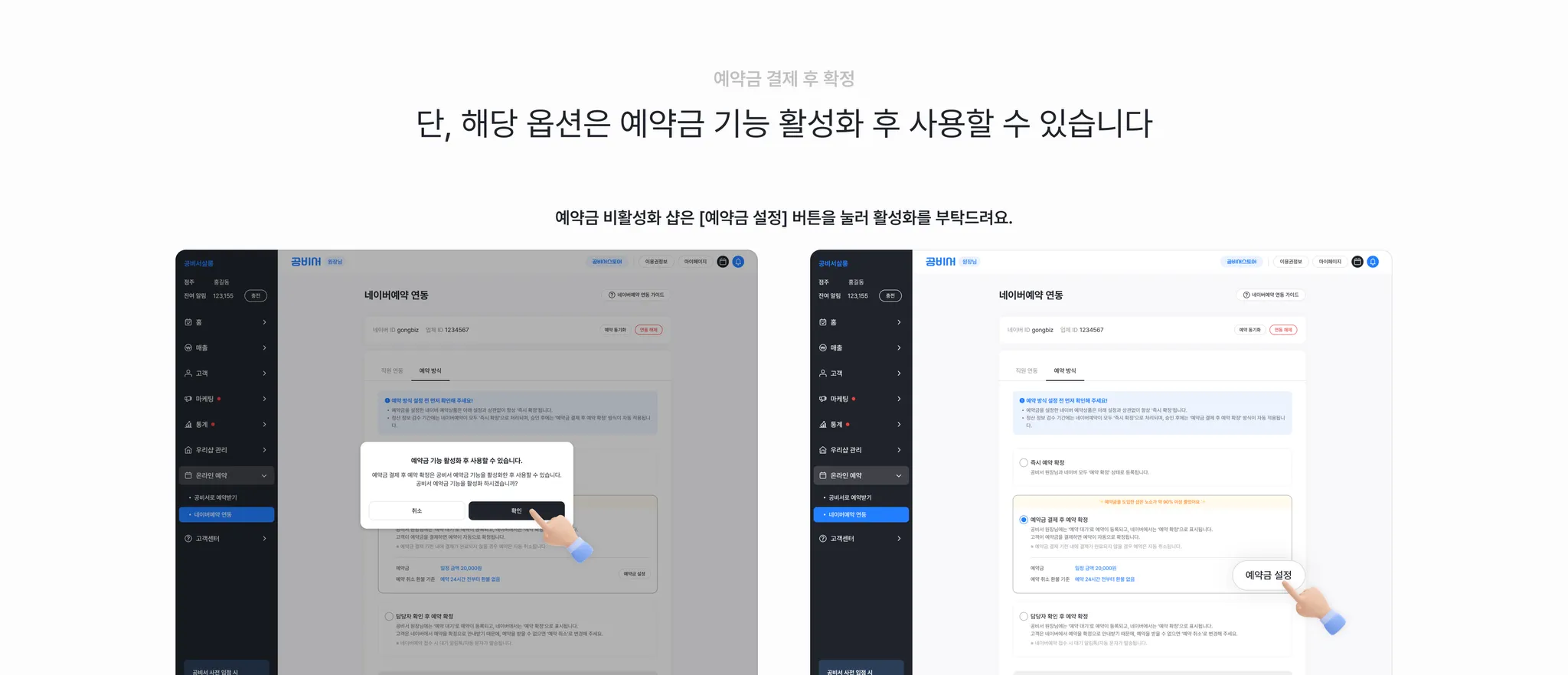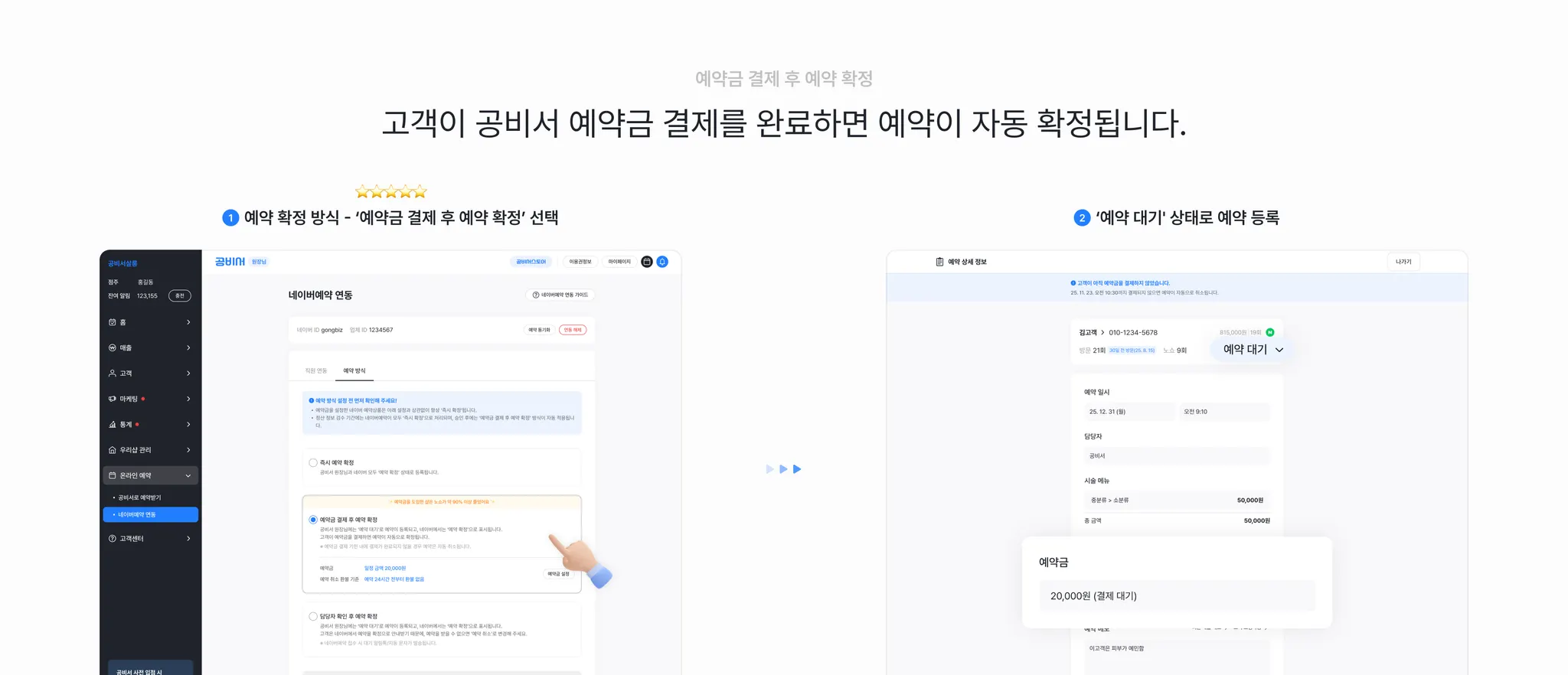 고객이 공비서예약금 결제를 완료하면 예약이 자동 확정됩니다.
