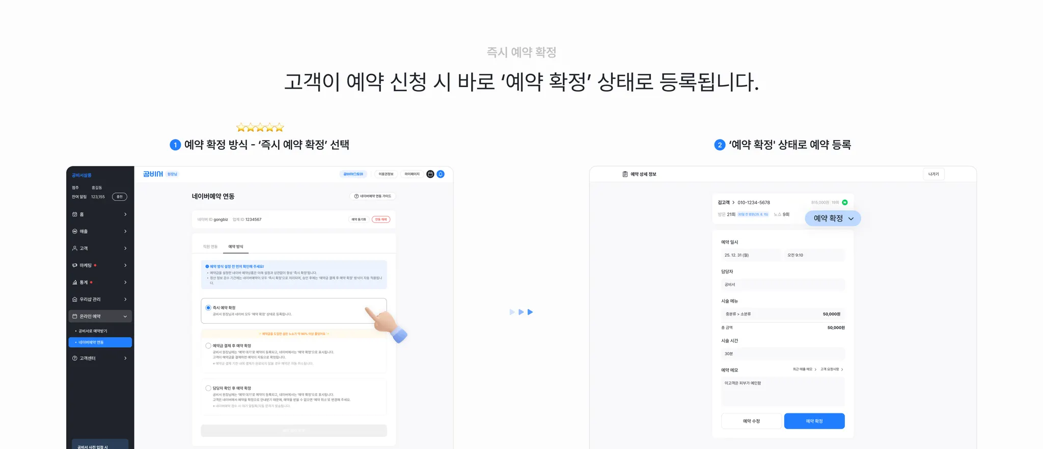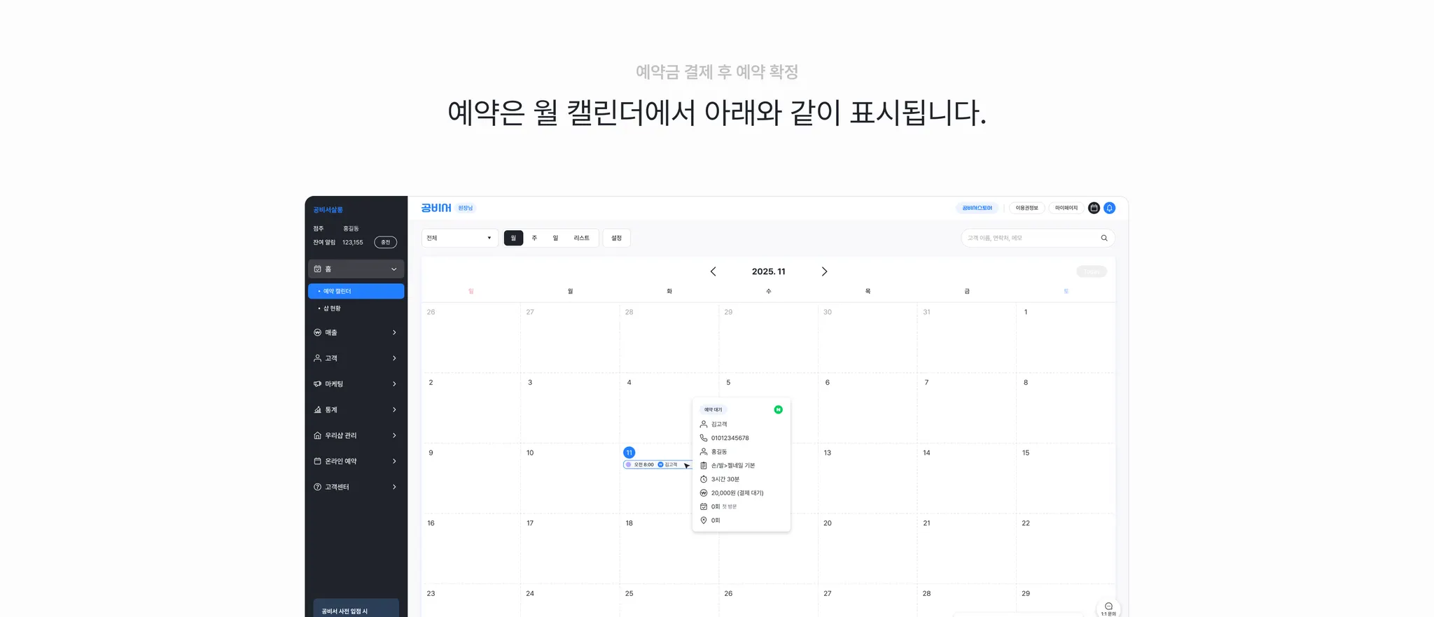 고객이 예약 신청 시 바로 ‘예약 확정’ 상태로 등록됩니다.