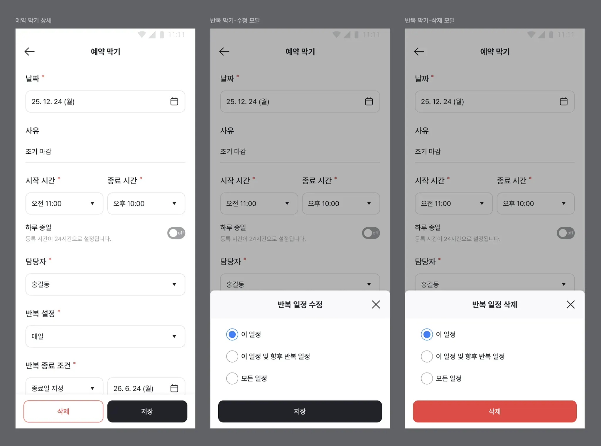 샵 운영 일정에 맞춰 특정 날짜·기간 동안 예약을 반복적으로 막을 수 있고,