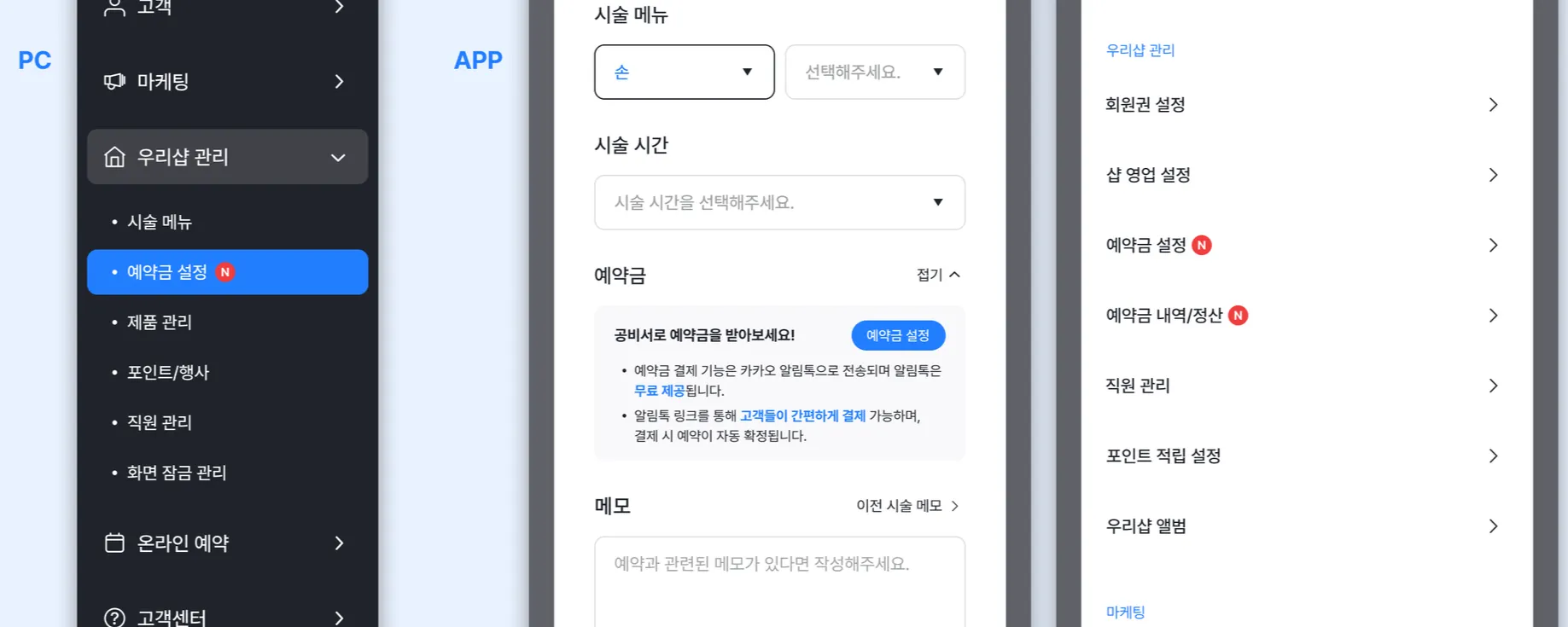 APP : 메뉴 > 우리샵 관리 > 예약금 설정