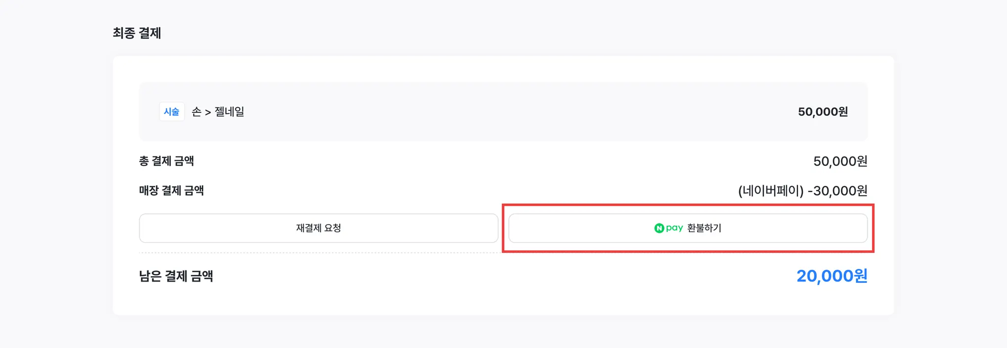 네이버페이 매장 결제 환불은 예약금 결제건을 포함한 전액 환불만 가능하며,