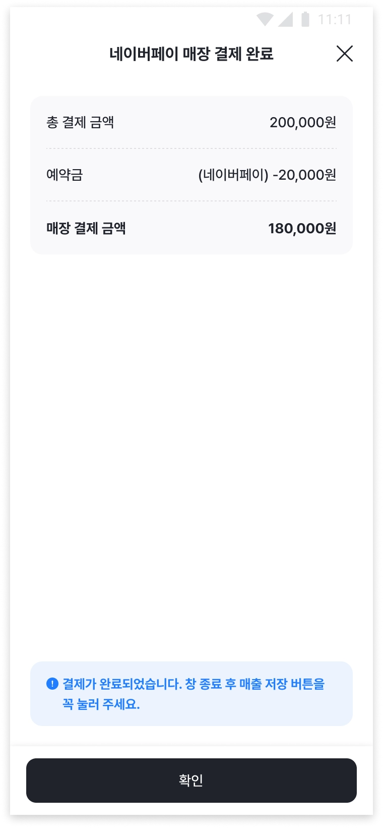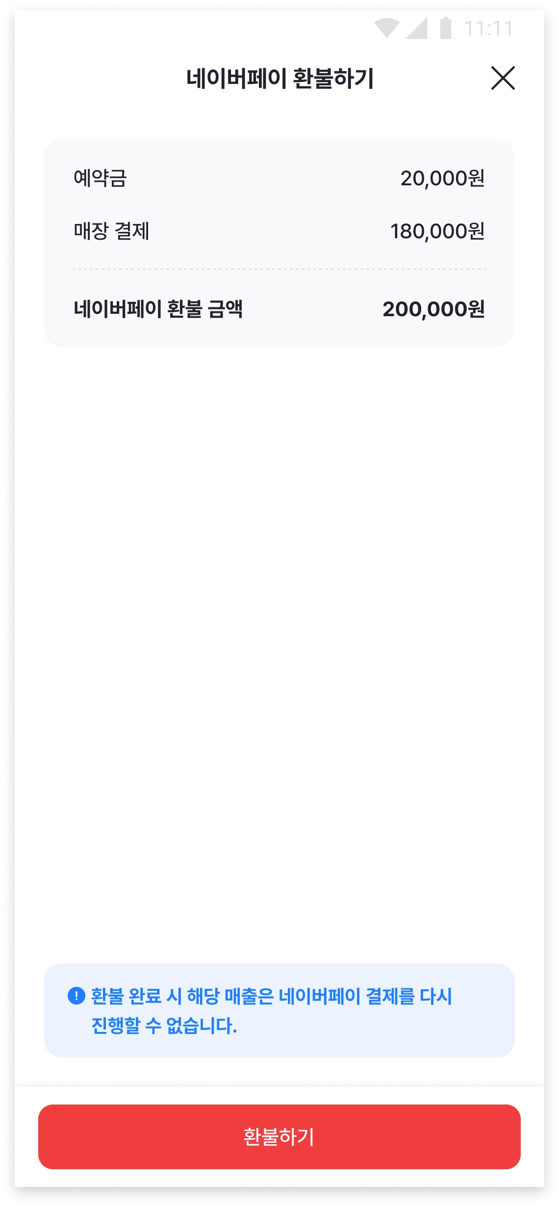 환불 완료 시 해당 매출은 네이버페이 결제를 다시 진행할 수 없습니다.