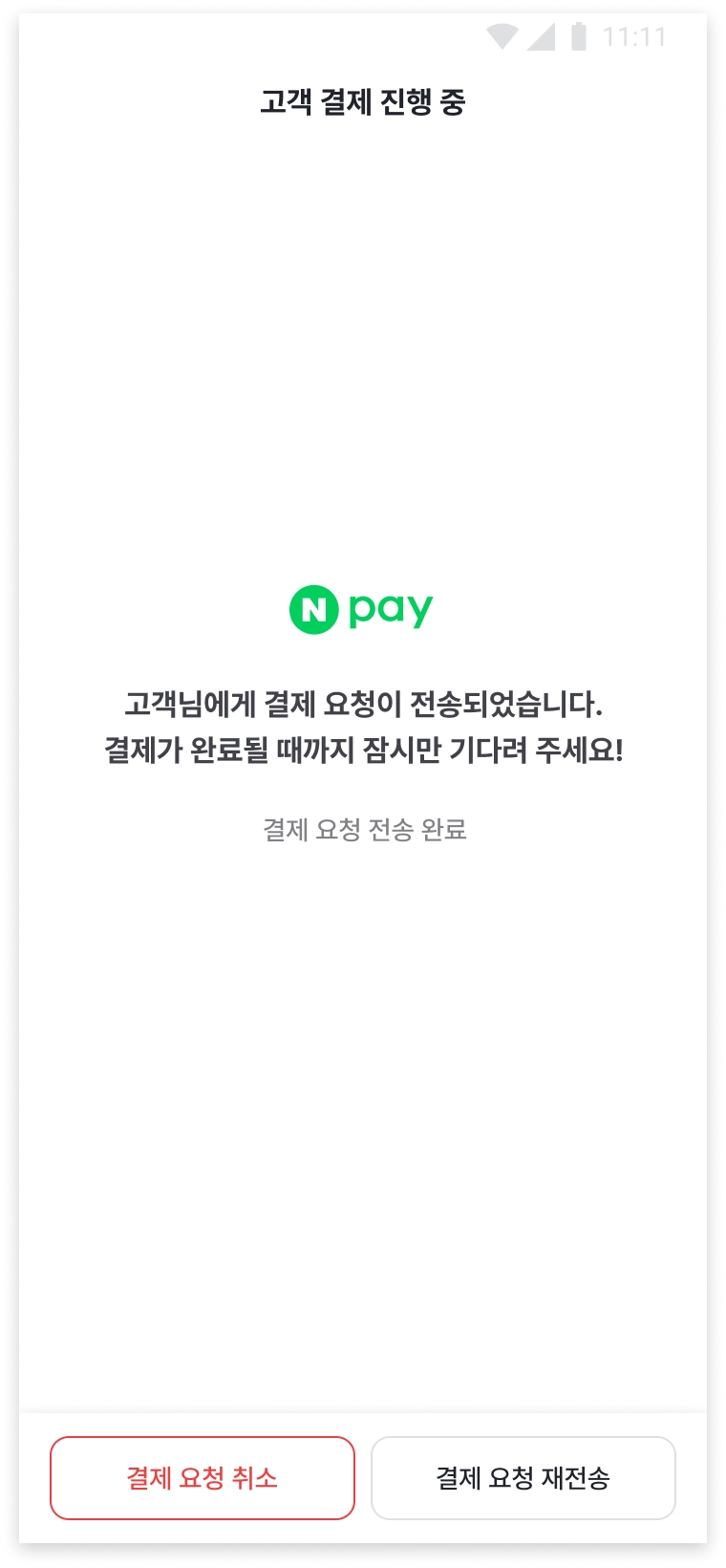 결제가 완료되지 않은 경우, 결제 요청을 취소하거나 재전송 하실 수 있습니다.