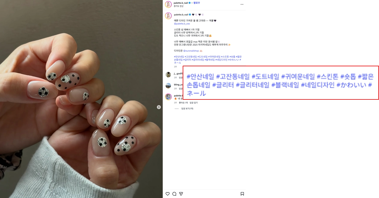 ‘성수 네일샵’, 강남 피부관리’처럼 지역 기반 검색에 좋아요.