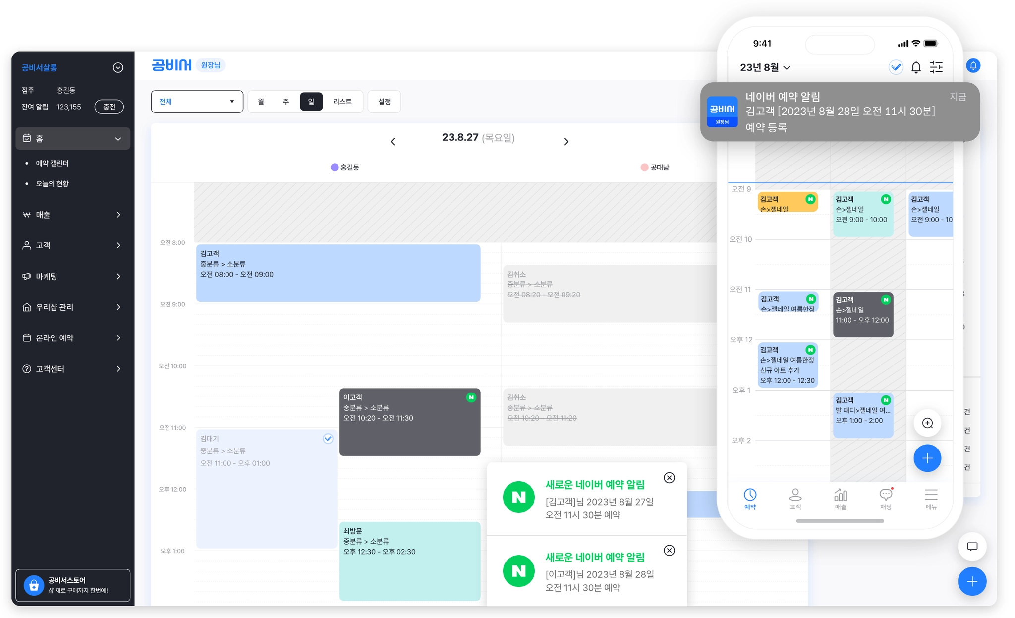 공비서 원장님에 등록된 고객이 공비서 앱 가입 시, 예약 및 회원권 관리 자동 연동