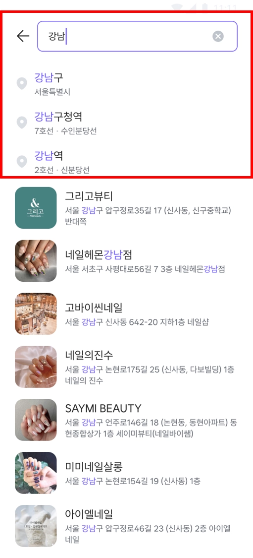 ‘지역명’, ‘지하철역’만 입력해도 해당 지역 샵을 한눈에 확인할 수 있어요.