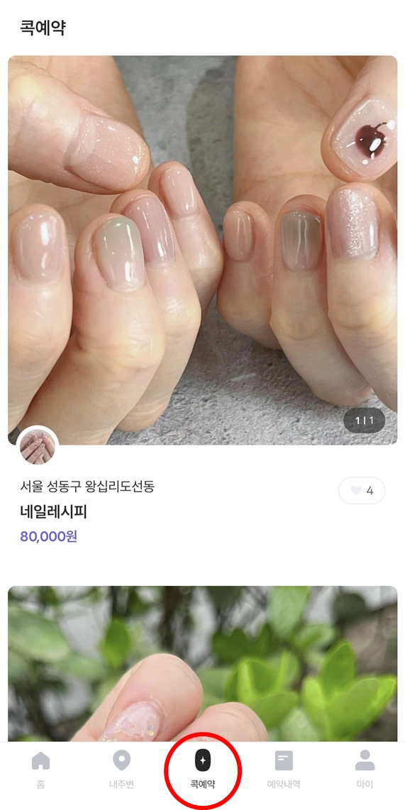 콕 예약 탐색 > 마음에 드는 디자인 선택 > 예약하기