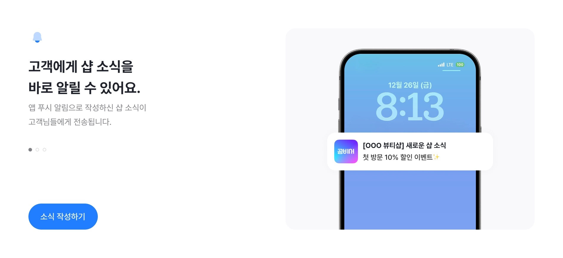작성한 소식은 앱 푸시 알림으로 고객에게 빠르게 전송됩니다.