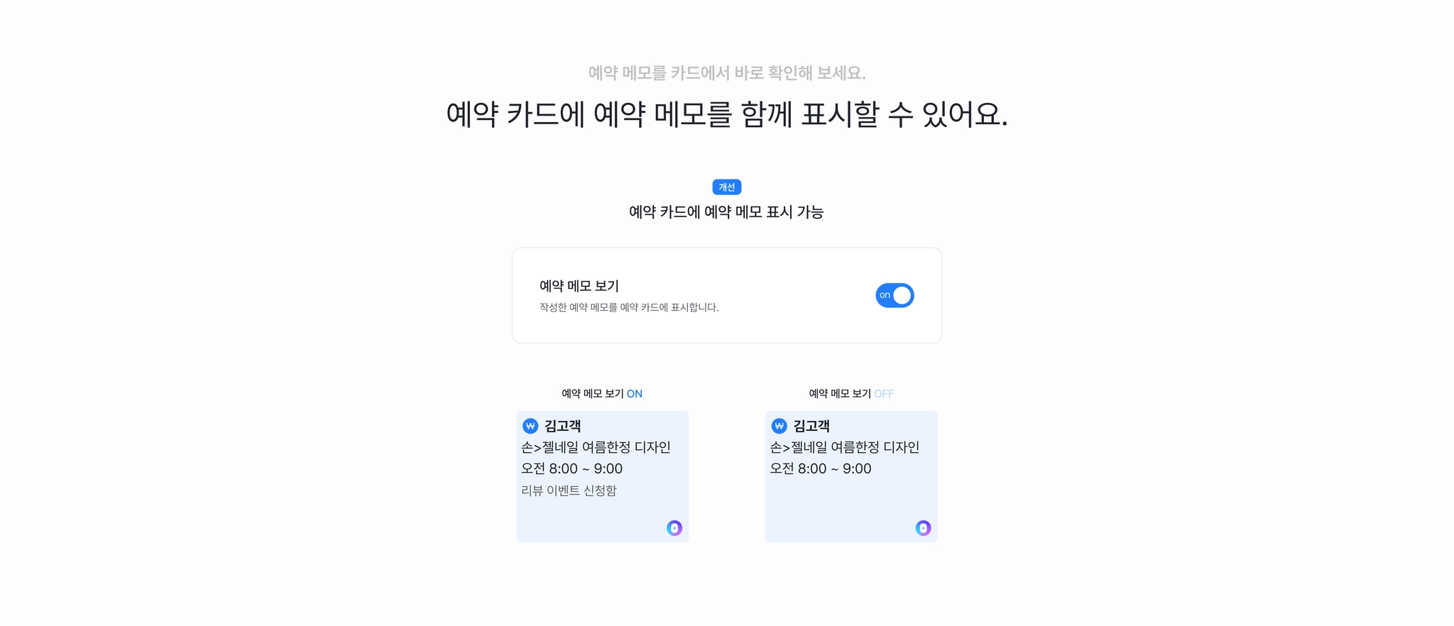 캘린더 예약 카드에 예약 메모를 함께 표시할 수 있도록 개선되었습니다.