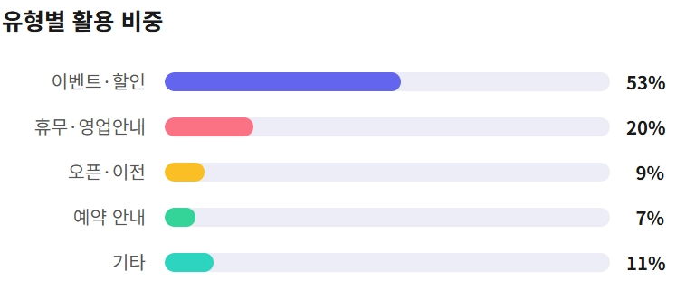 실제 데이터를 분석해보니, 절반 이상이 할인·이벤트 홍보로 고객을 끌어들이고 있었어요.