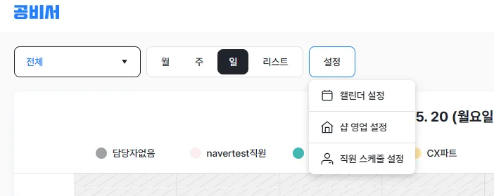 공비서 PC의 캘린더 설정 및 샵 영업 설정 경로
