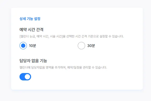 예약 시간 간격을 10분, 30분 단위로 설정 할 수 있습니다.