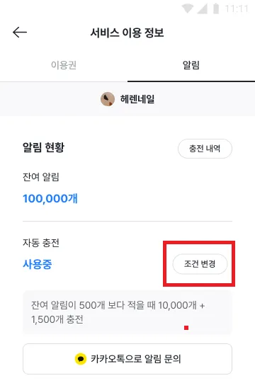 2-2. APP 잔여 알림 ‘자동 충전’ 조건 변경하기