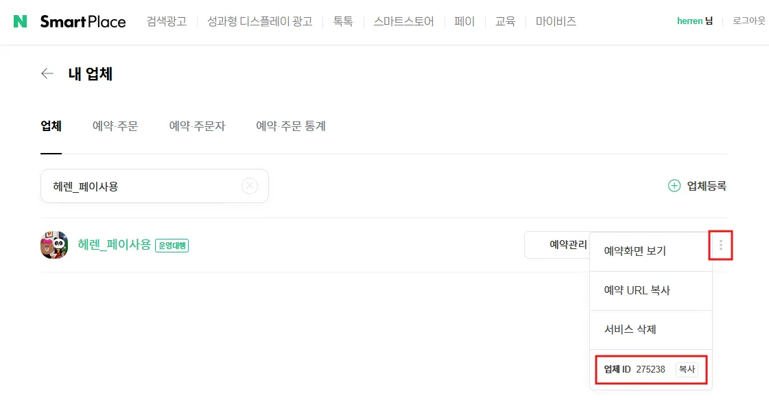 내 업체 관리 페이지 > 클릭하여 이동해 주세요.